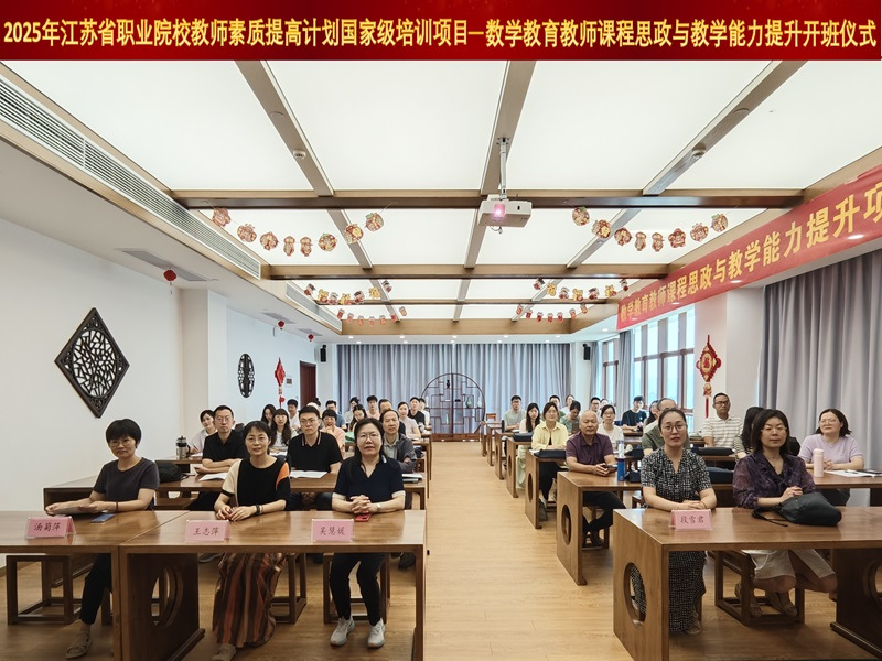 2025年7月11日上午,由无锡职业技术大学承办的“江苏省职业院校教师素质提高计划国家级培训项目——高职院校数学教师课程思政与教学能力提升研修”项目开班仪式于该校崇德楼孔子课堂隆重举行。无锡职业技术大学副校长吴慧媛教授、基础课部主任王志萍教授、继续教育与培训部段雪君科长、数学教研室主任汤菊萍老师出席开班仪式,来自全省高职院校的40名骨干教师参加。仪式由该校基础课部汤菊萍老师主持。